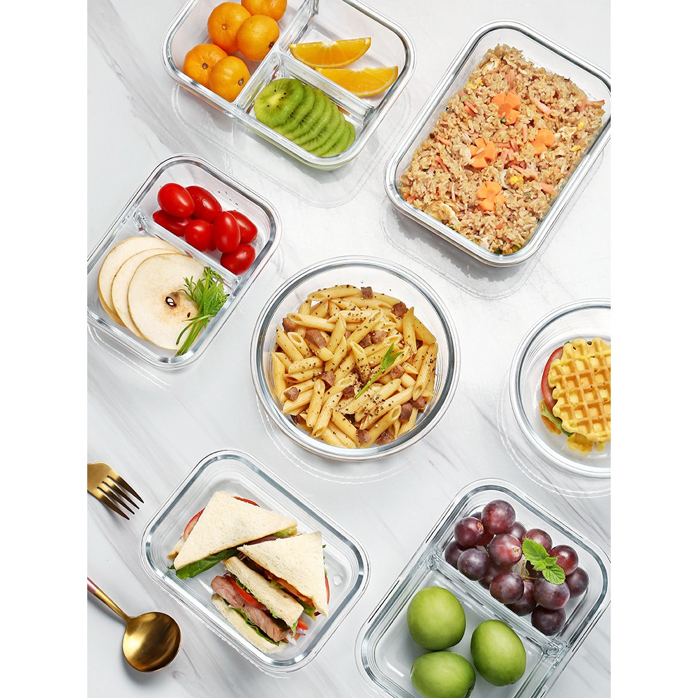 Hộp cơm văn phòng thủy tinh, Hộp đựng thủy tinh 1,2,3 ngăn dung tích từ 320ml - 1000ml free ship
