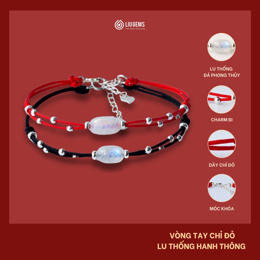 Vòng Tay Chỉ Đỏ Handmade Lu Thống, Đồng Điếu Phong Thuỷ Liugems, Tết Thắt Dây Rút, Dây Bện, Mix Charm Cho Nữ, Unisex free ship