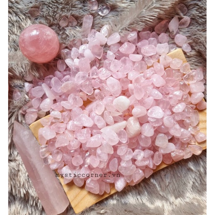 Vụn đá thach anh Hồng (Rose Quartz ), đá thanh tẩy trong Tarot, Reiki, thiền định, phong thủy free ship